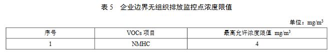 6.3 企業(yè)邊界無組織排放監(jiān)控點(diǎn)濃度限值應(yīng)執(zhí)行表5規(guī)定的限值。