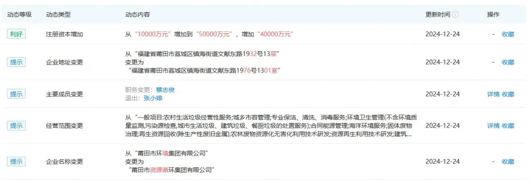 企查查顯示,莆田市資源循環(huán)集團(tuán)有限公司法定代表人為蔡志俊,公司是由莆田市環(huán)境集團(tuán)有限公司更名而來,業(yè)務(wù)范圍增加再生資源加工;再生資源銷售;園區(qū)管理服務(wù);停車場服務(wù);生產(chǎn)性廢舊金屬回收;新能源汽車廢舊動力蓄電池回收及梯次利用等。