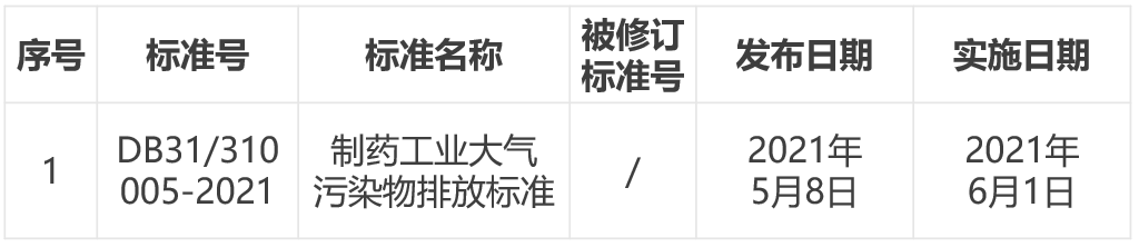 上海《制藥工業(yè)大氣污染物排放標準》發(fā)布