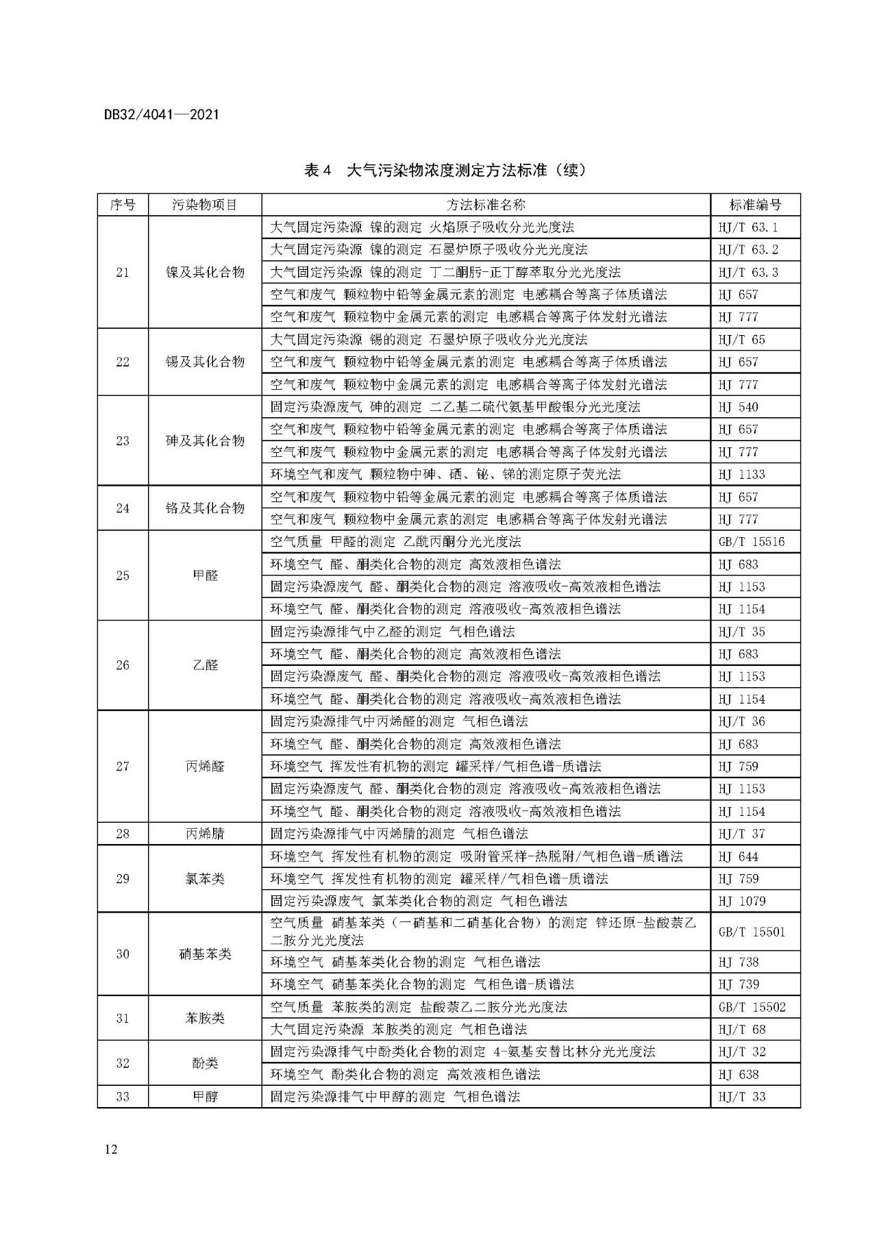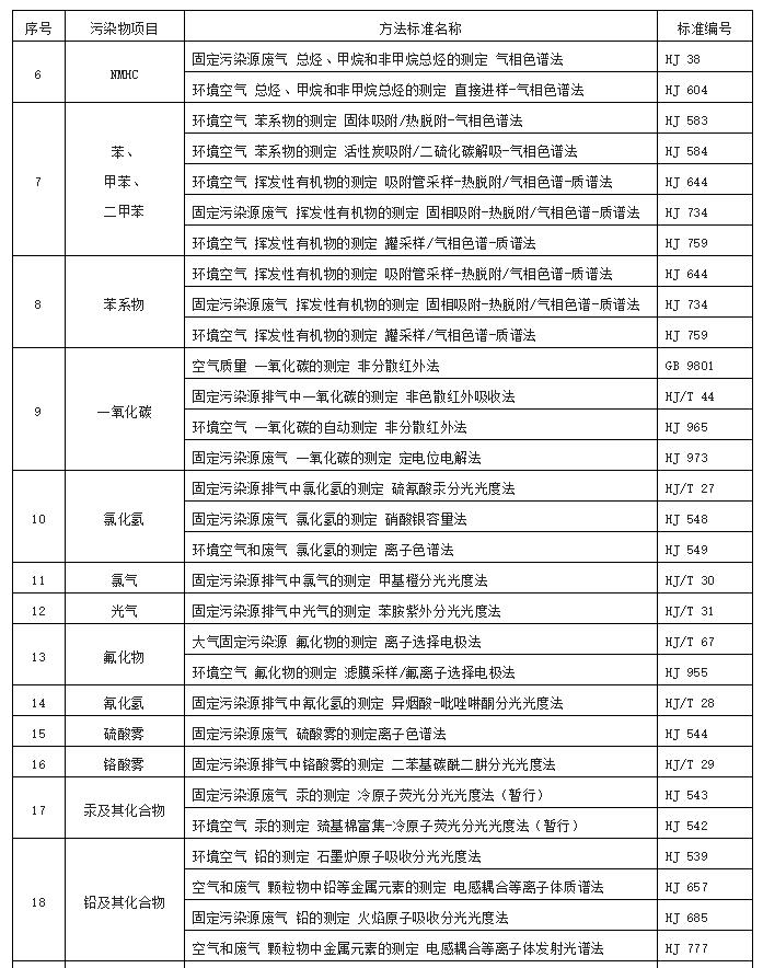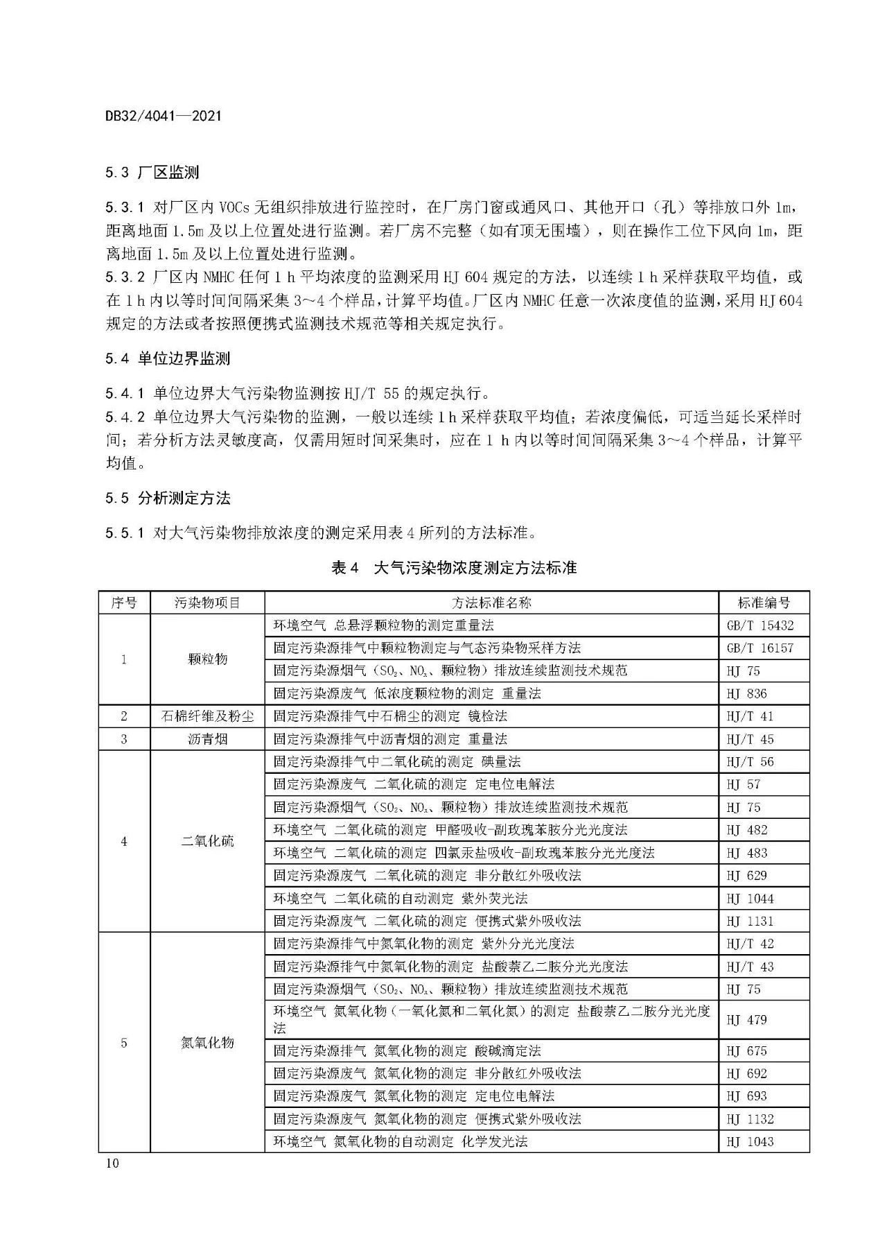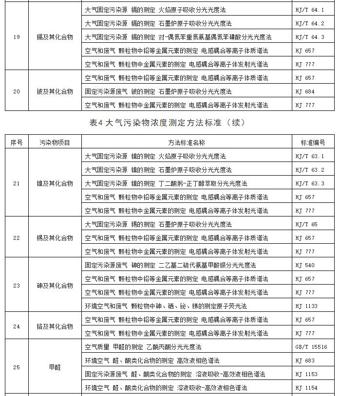 5.5.1對大氣污染物排放濃度的測定采用表4所列的方法標準。