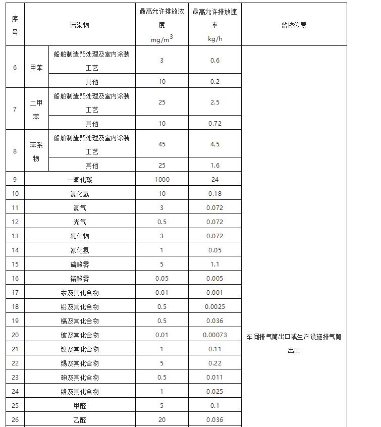 2、非甲烷總烴(NHMC)的排放限制為60,苯為1(NHMC除船舶制造預處理及室內(nèi)涂裝工藝外,70);