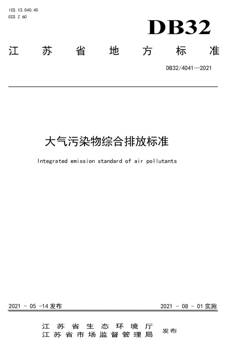 本文件規(guī)定了江蘇省固定污染源大氣污染物的排放控制、監(jiān)測與監(jiān)督管理要求。