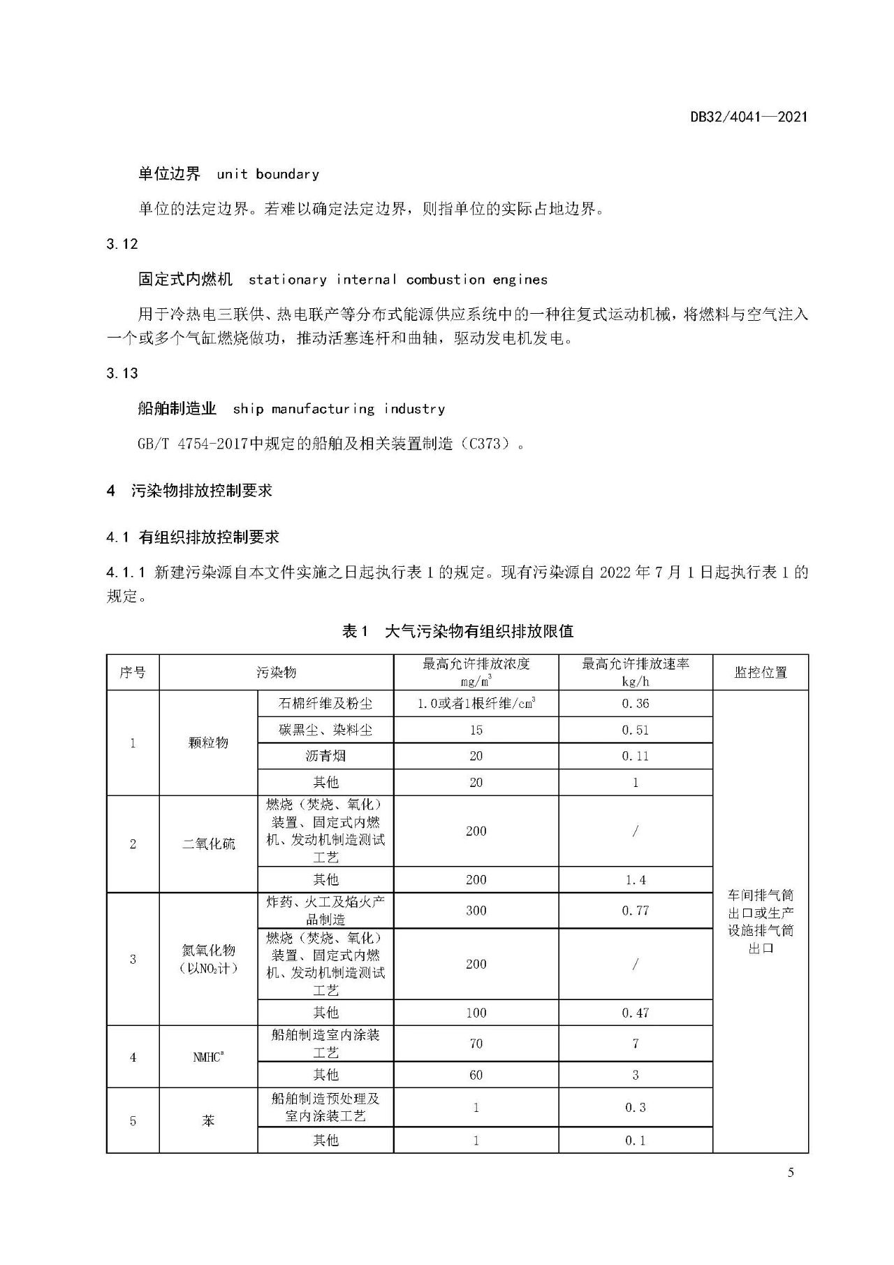4.1.1新建污染源自本文件實施之日起執(zhí)行表1的規(guī)定。現(xiàn)有污染源自2022年7月1日起執(zhí)行表1的規(guī)定。
