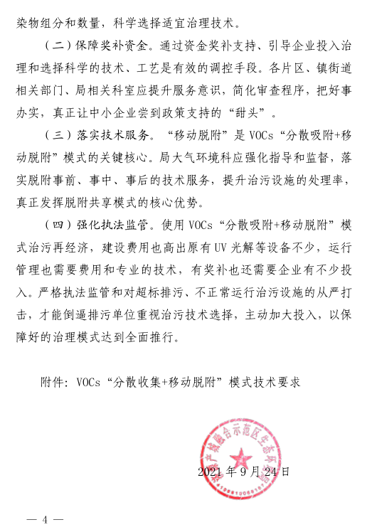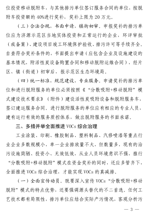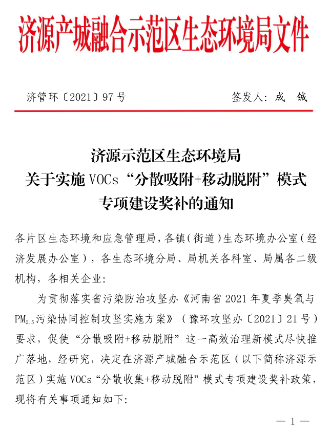 9月24日,河南省濟(jì)源生態(tài)環(huán)境局印發(fā)《關(guān)于實(shí)施VOCs“分散吸附+移動脫附”模式專項(xiàng)建設(shè)獎補(bǔ)的通知》,決定對按要求建設(shè)VOCs“分散吸附”和“移動脫附”的相關(guān)企業(yè)進(jìn)行資金獎補(bǔ),力促這一高效治理新模式在濟(jì)源落地生根。