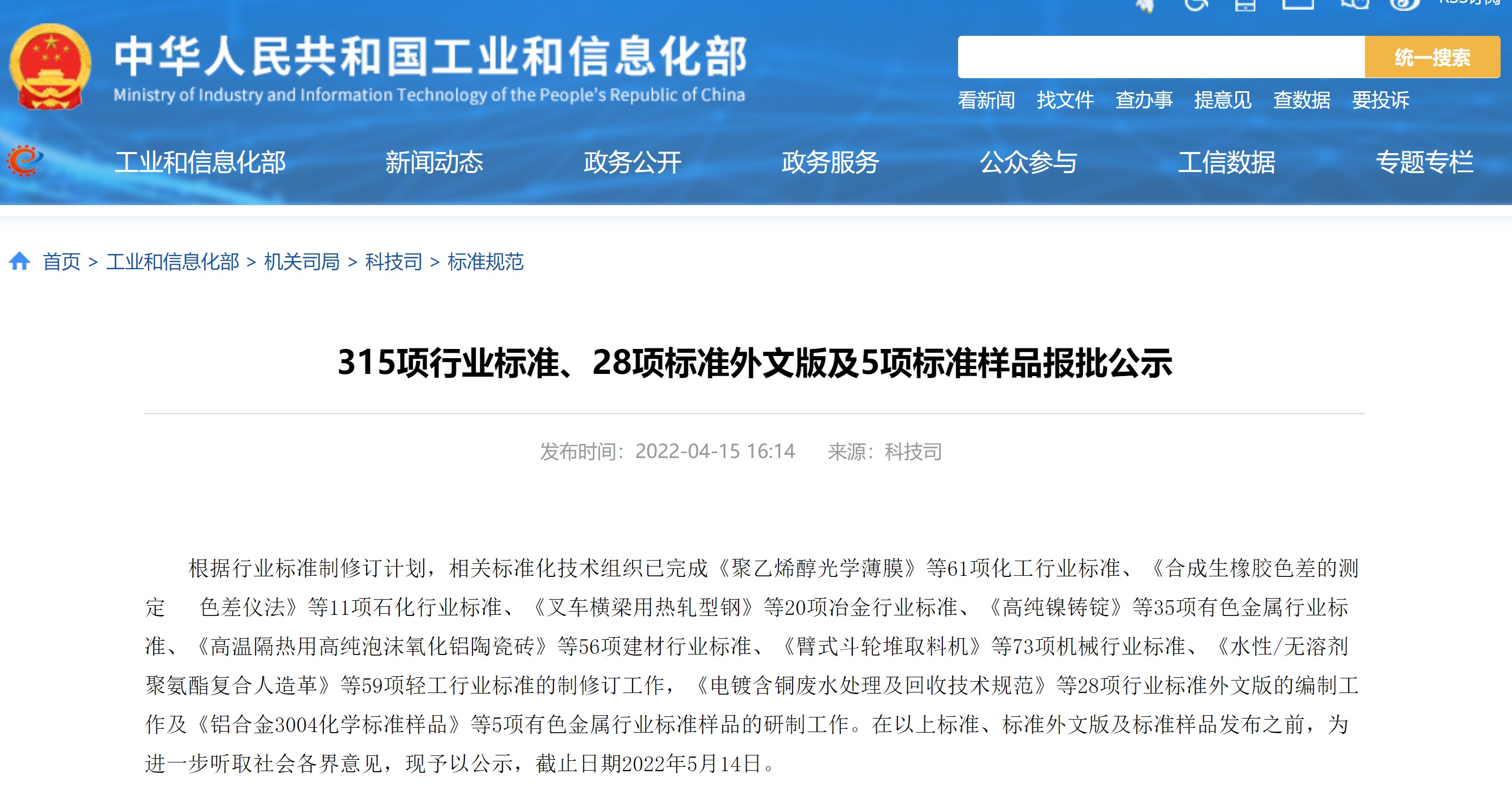 來源:工信部、標(biāo)準(zhǔn)網(wǎng)、VOCs前沿 轉(zhuǎn)載于:北極星VOCs在線