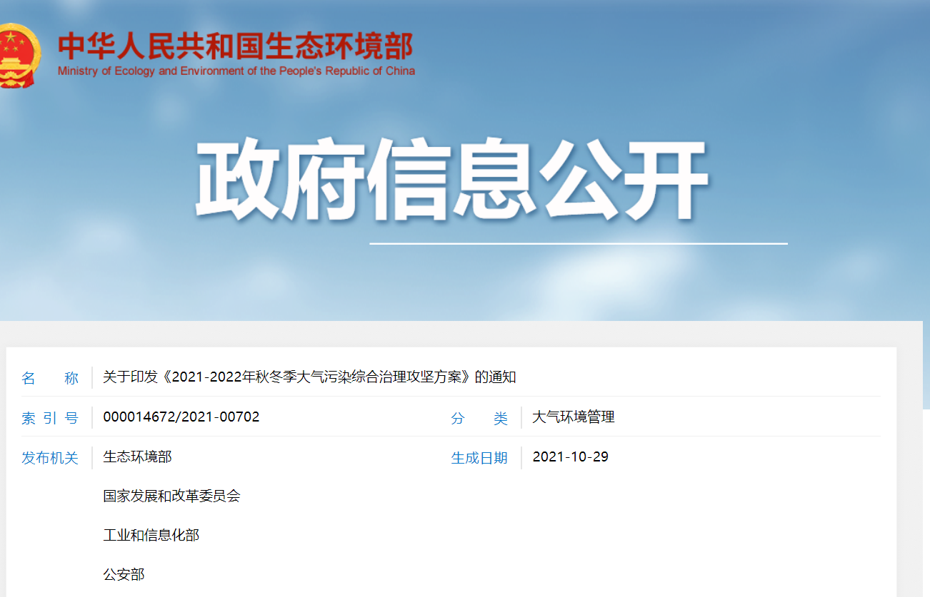 近日,生態(tài)環(huán)境部發(fā)布關(guān)于印發(fā)《2021-2022年秋冬季大氣污染綜合治理攻堅(jiān)方案》的通知。要求充分認(rèn)識(shí)2021-2022年秋冬季大氣污染綜合治理工作的重要性和緊迫性,精準(zhǔn)扎實(shí)推進(jìn)各項(xiàng)任務(wù)措施,通過持續(xù)開展秋冬季攻堅(jiān)行動(dòng),著力打好重污染天氣消除攻堅(jiān)戰(zhàn),為“十四五”深入打好藍(lán)天保衛(wèi)戰(zhàn)開好局、起好步。
