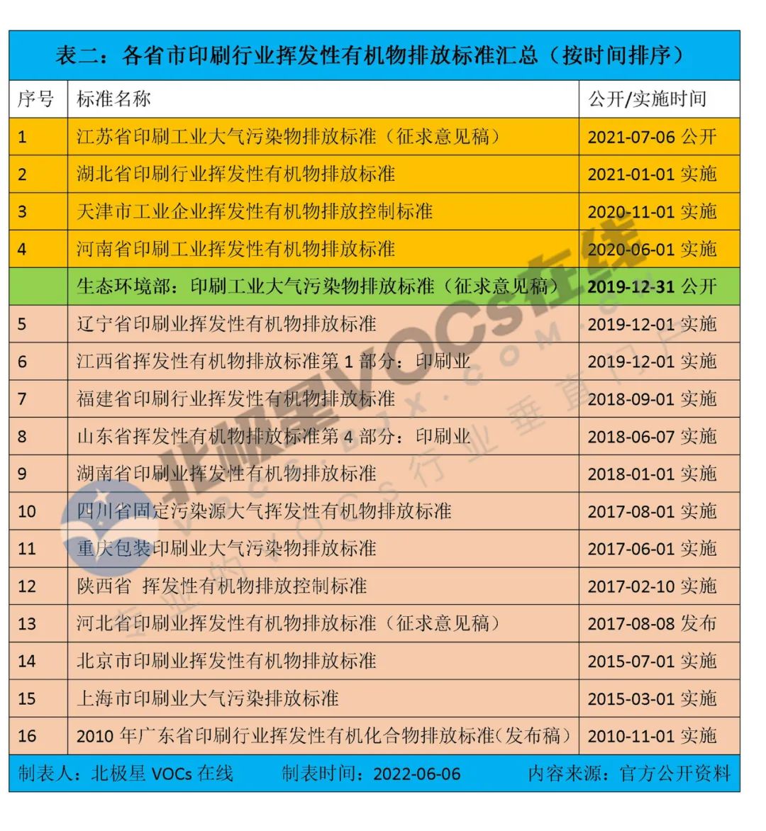 各省市紛紛響應(yīng)國家政策號召,制定執(zhí)行嚴(yán)于新國標(biāo)的地方污染物排放標(biāo)準(zhǔn)。據(jù)北極星VOCs在線不完全統(tǒng)計(jì),截至目前,全國共16省市出臺地方性印刷行業(yè)揮發(fā)性有機(jī)物排放標(biāo)準(zhǔn)(如有疏漏,還望海涵)。詳見表二。