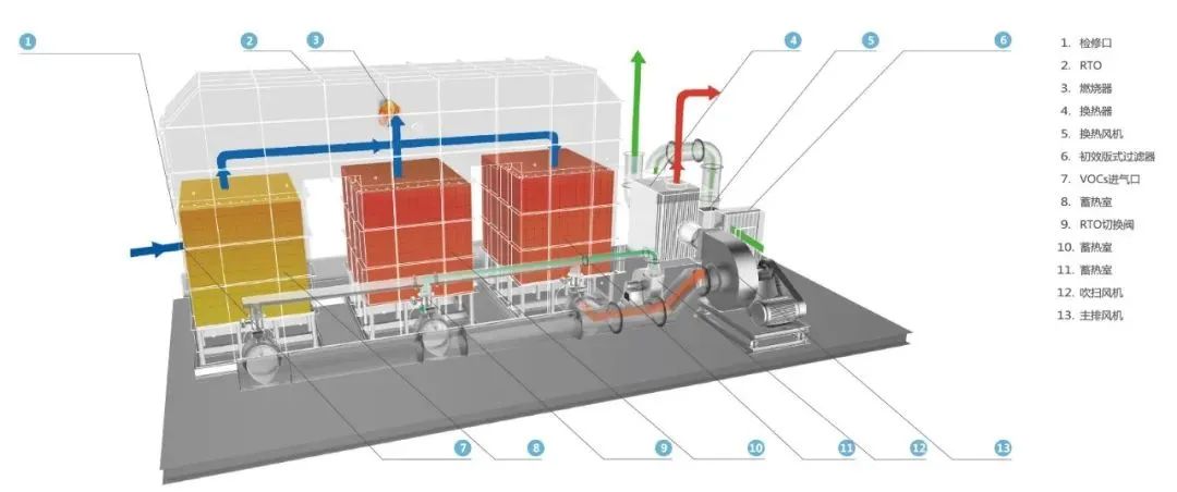 作為燃燒裝置,其能耗是最值得關(guān)注的指標(biāo)之一,因此在RTO發(fā)展的歷程中熱回收的效率至關(guān)重要。從最初的直火燃燒裝置,換熱式氧化裝置,再到蓄熱氧化裝置。