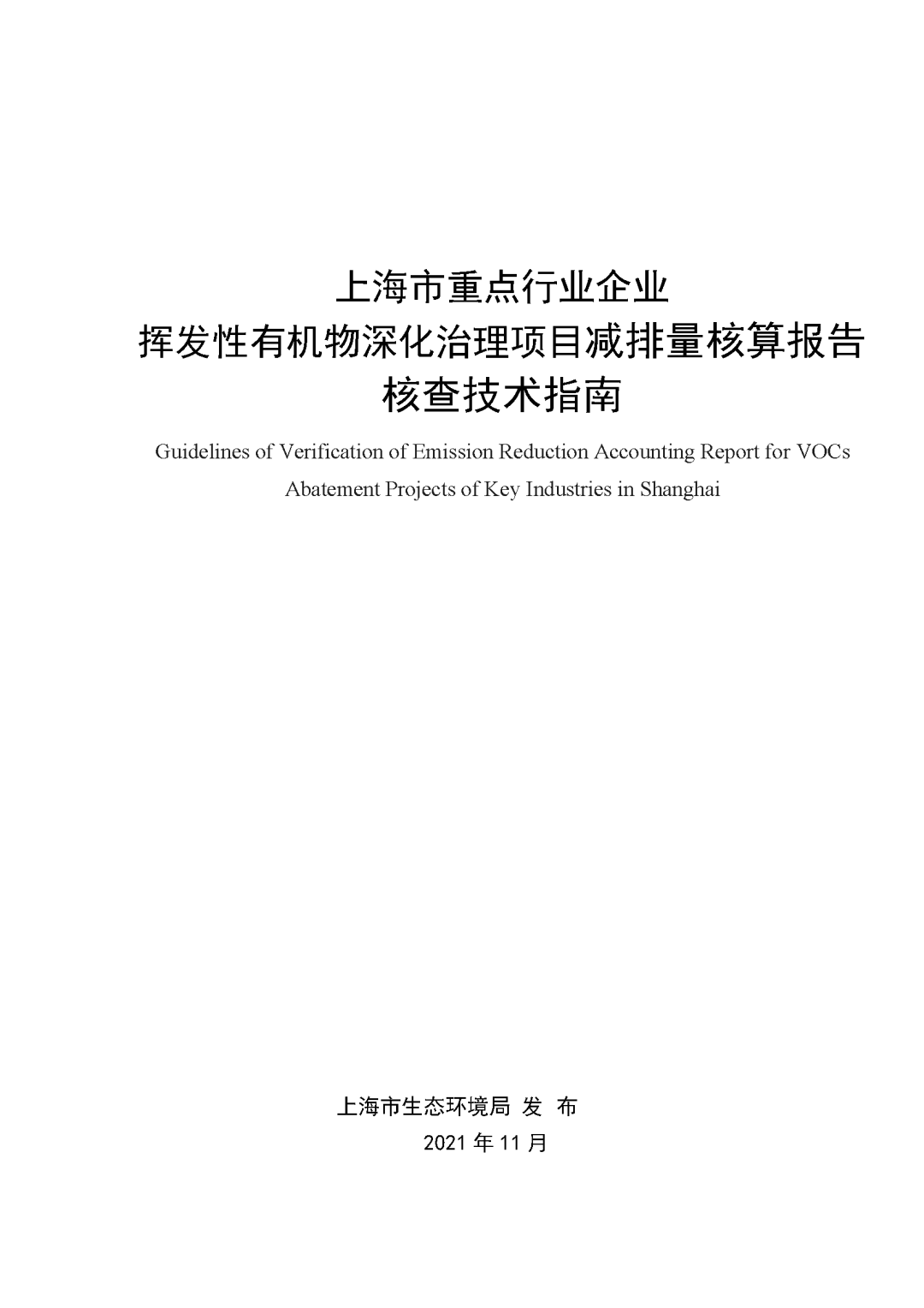 附件2 《上海市重點(diǎn)行業(yè)企業(yè)揮發(fā)性有機(jī)物深化治理項(xiàng)目減排量核算報(bào)告核查技術(shù)指南(試行)》