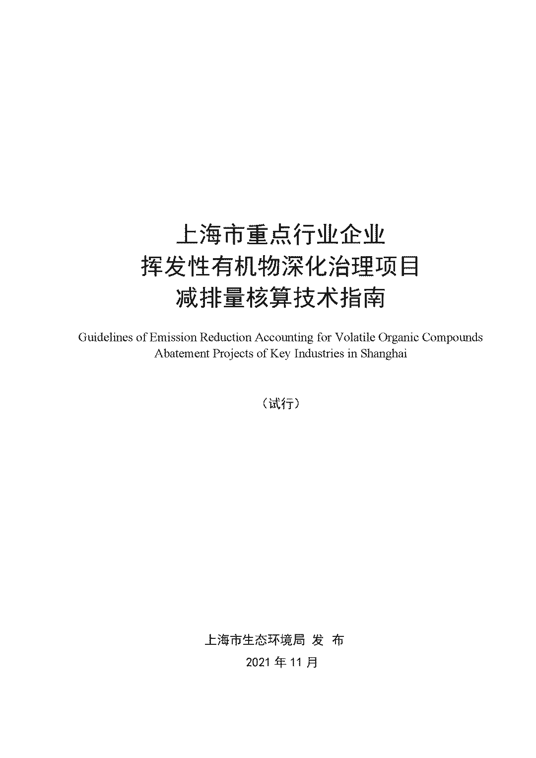 附件1 《上海市重點(diǎn)行業(yè)企業(yè)揮發(fā)性有機(jī)物深化治理項(xiàng)目減排量核算技術(shù)指南(試行)》