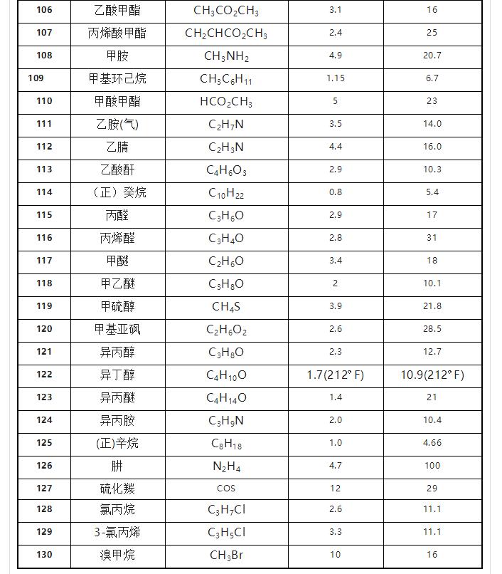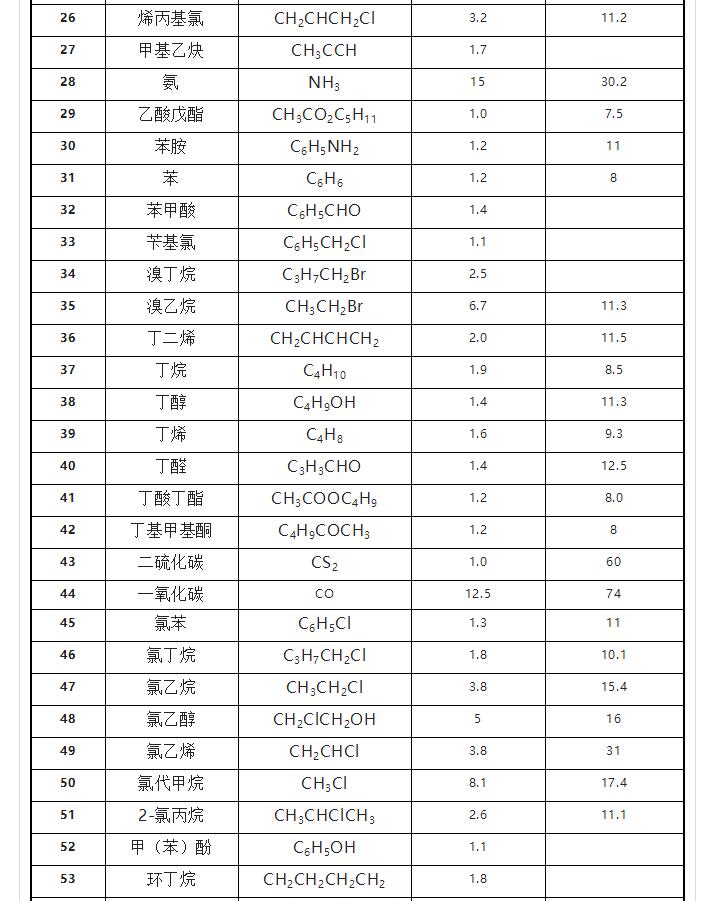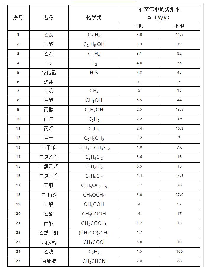 ③常見(jiàn)物質(zhì)的爆炸極限如下,僅供參考: