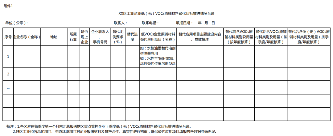 附件:1.XX區(qū)工業(yè)企業(yè)低揮發(fā)性有機物(VOCs)原輔材料替代目標推進情況臺賬