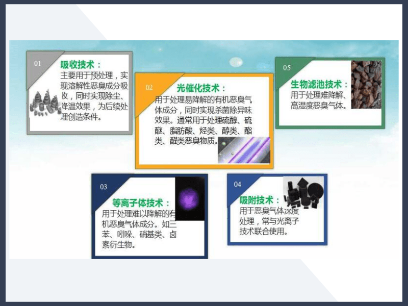 針對(duì)惡臭氣體污染物的特性和污染現(xiàn)狀,公司開發(fā)出了中和/氧化吸收、等離子體、光催化、生物過濾等處理系統(tǒng),可用于處理H2S、NH3、硫醇、硫醚、胺、苯乙烯等惡臭氣體。